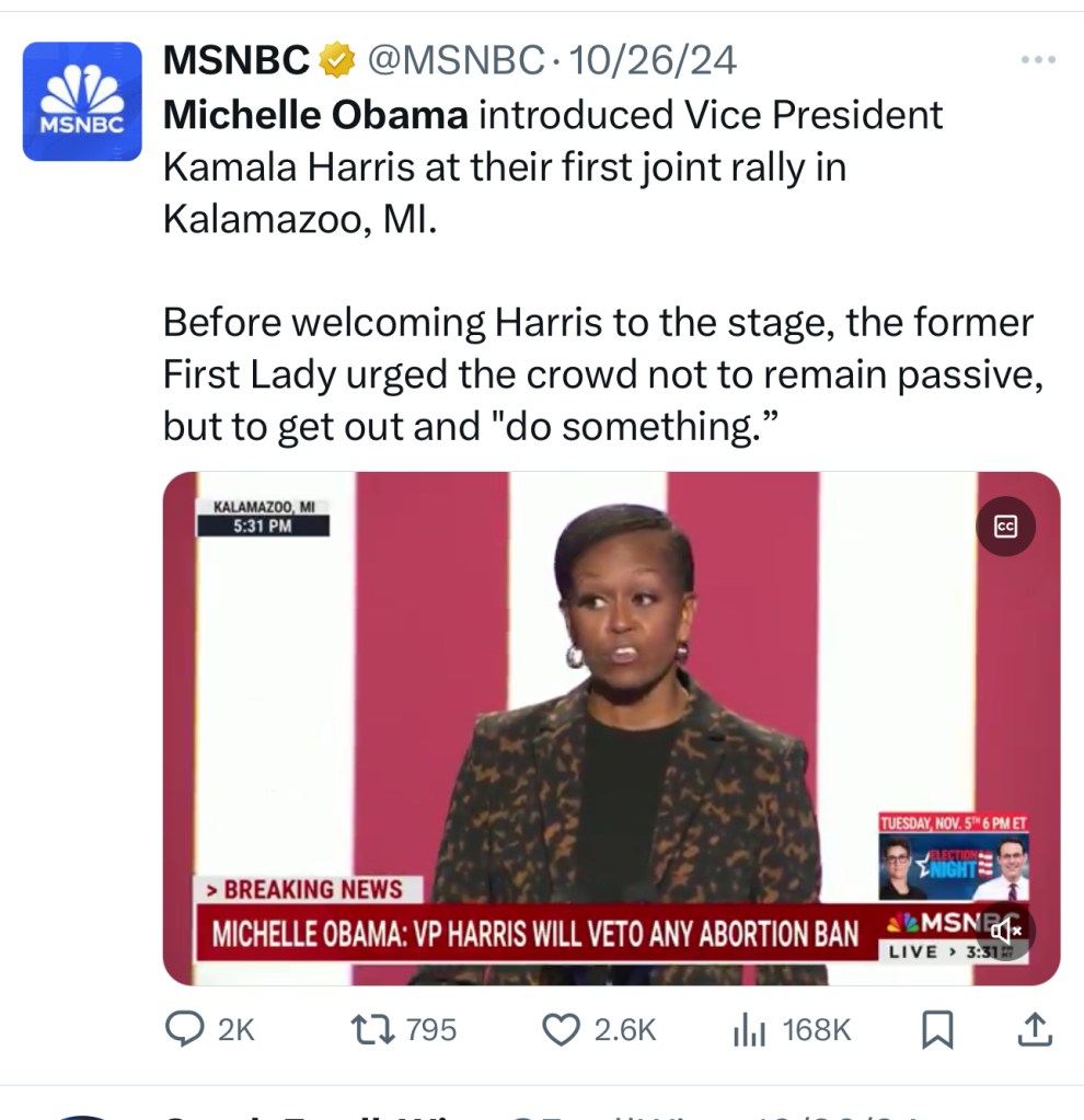 MSNBC’s coverage frames her speech as a defense of Harris and a critique of Republican policies, particularly on issues like abortion and Trump’s influence. This interpretation aligns with a liberal narrative, presenting her comments as a call to action for Democratic voters.