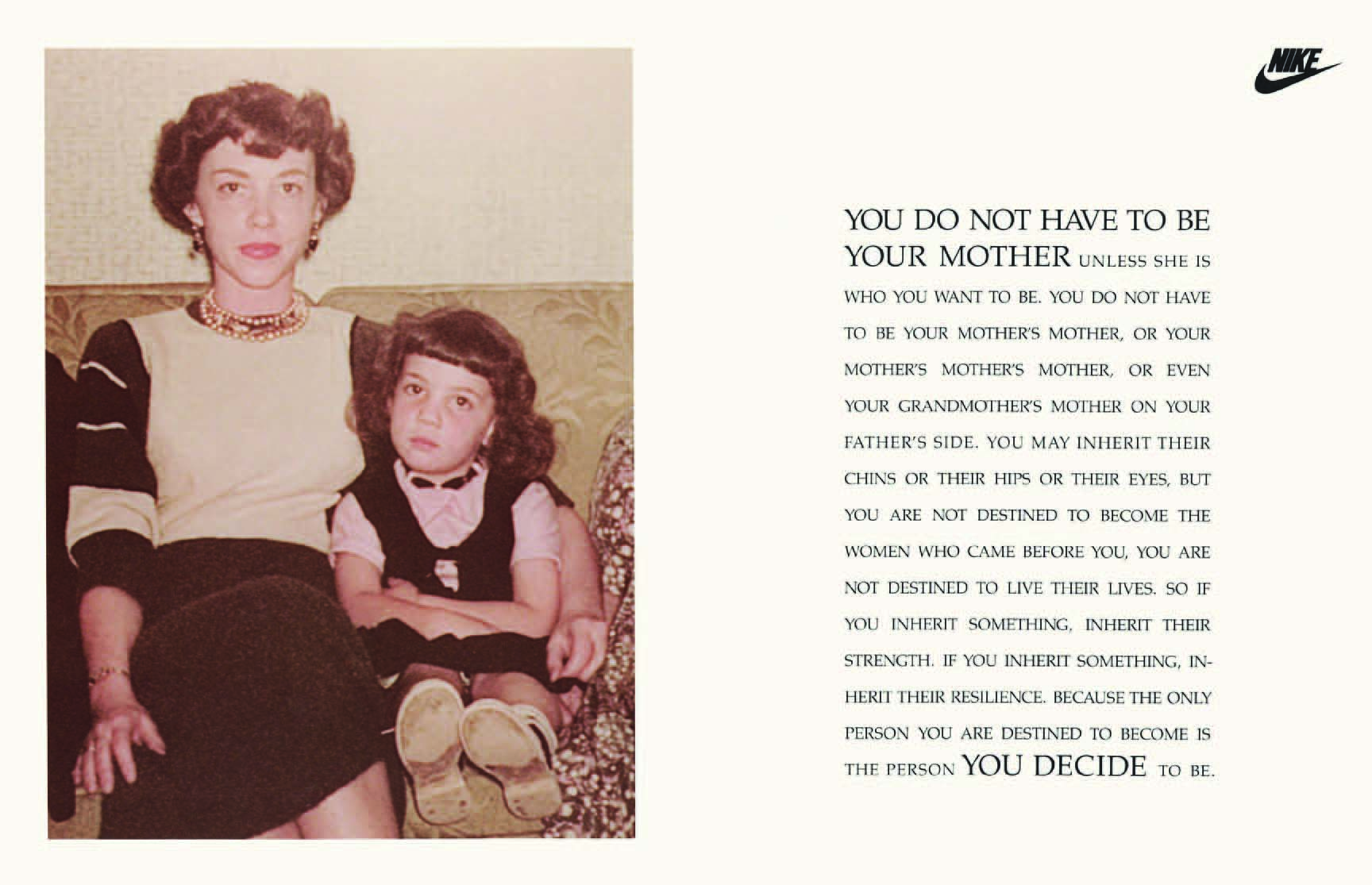 As advertising evolved, brands like Kotex moved from implicit messaging to more direct, inclusive narratives. This shift reflects broader social change, as brands now tackle once-taboo subjects with openness. In the 2012 documentary Art & Copy, Janet Champ and Charlotte Moore from Nike began creating heartfelt advertisements about their issues, which resonated with other women. Their ads proved inspiring and empowering advertisements aimed at young girls and women can be smart and profitable